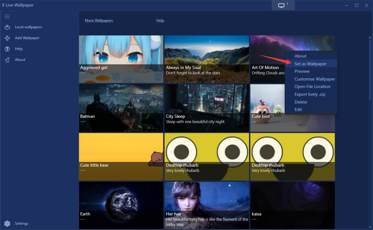 Fourthly, You can see the wallpaper you added in the Library, Click to set as Wallpaper.