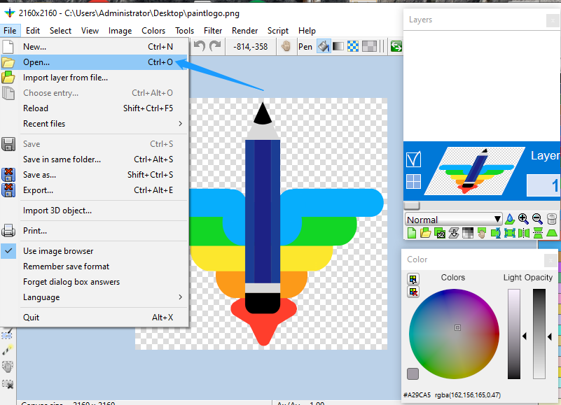 - 1. Open the Coole Image Editor and click "File"->"Open..."Menu options.