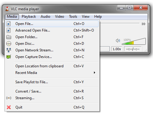 To open a network stream, open the Media menu and select the Open Network Stream menu item.