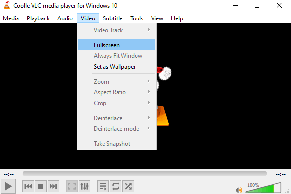 1. Select Full Screen from the Video menu. The video will then occupy the entire screen.