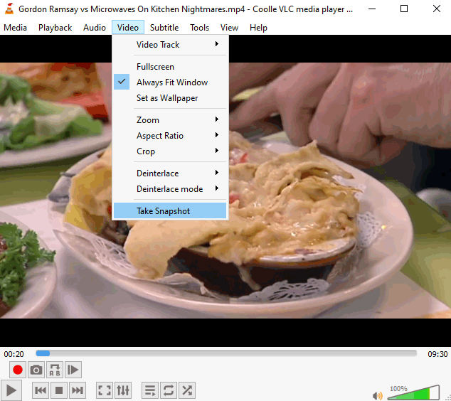 2. To capture an image from the video, select Take Snapshot from the Video menu.