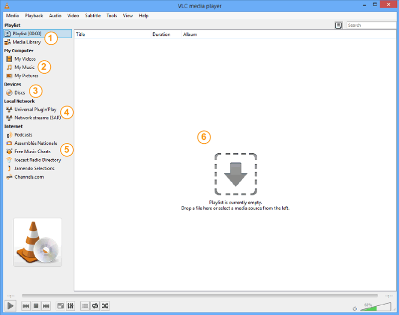 This view allows you to easily browse different sources of media. To access the Playlist View, click on the Playlist button in the main interface.
