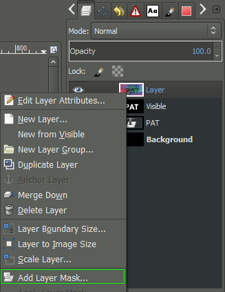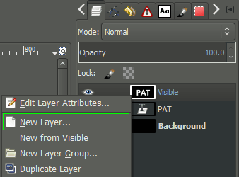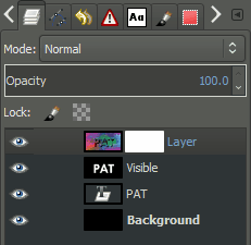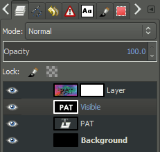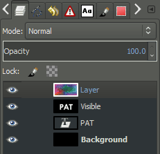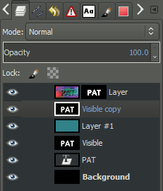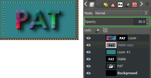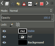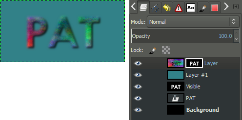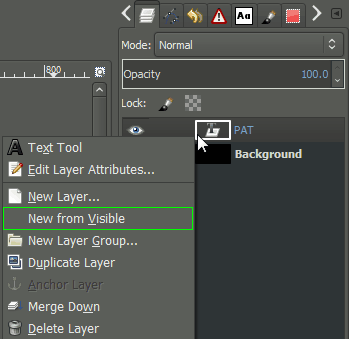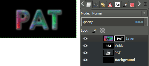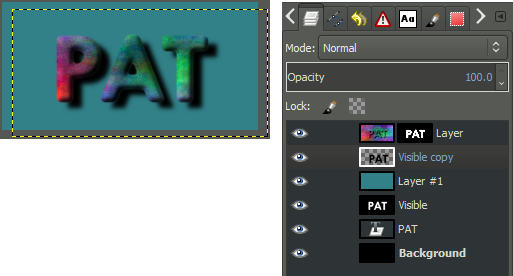 At this point, our layer palette will have three layers on it, the background, the text ("PAT"), and our new layer "Visible":