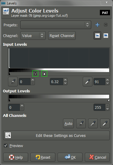 With the Adjust Color Levels dialog, we now want to sharpen up the edges of the mask a little bit: