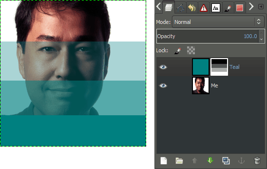 As you can see, filling the selected portion of the layer mask with black resulted in that area having 100% transparency, showing the layer below it.