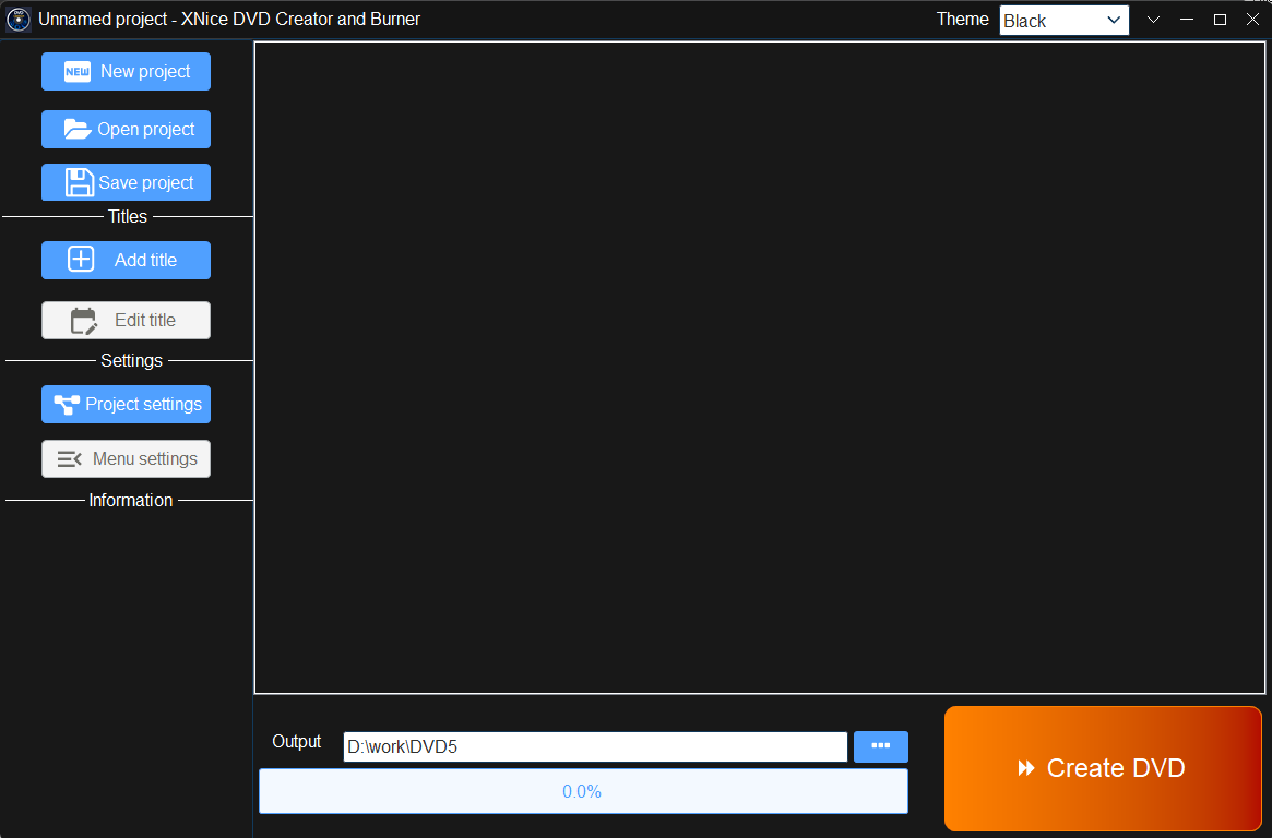 - Project settings: Open the project's settings dialog, such as, create iso image, burn to the disc.