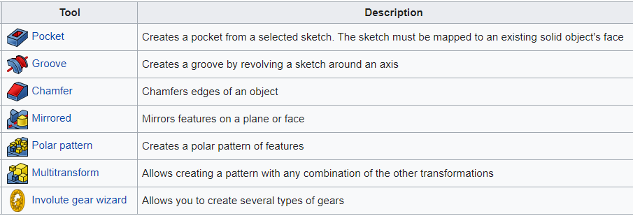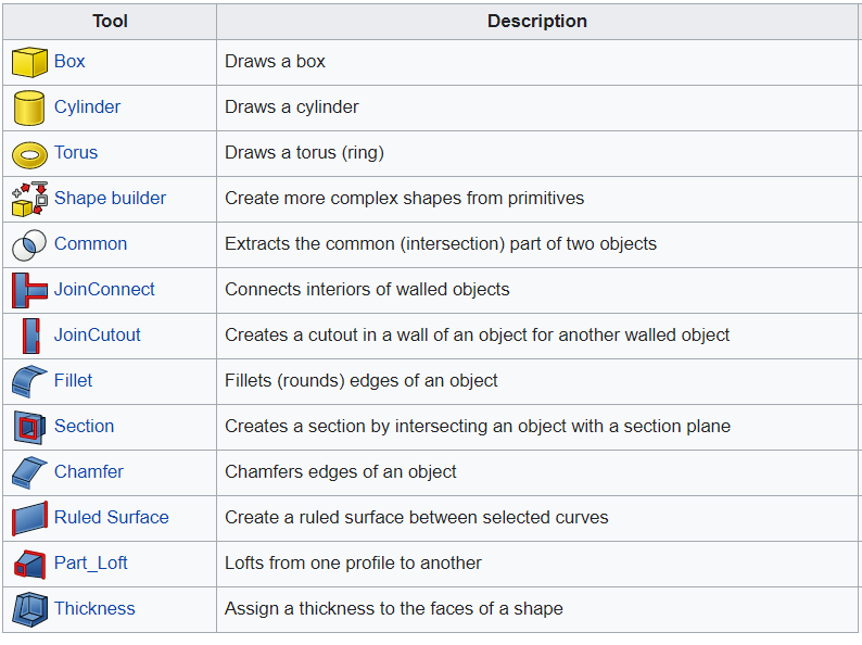 One of the biggest difficulties for new users of 3D-CAD-Pro, is to know in which workbench to find a specific tool. The table below will give you an overview of the most important workbenches and their tools. Refer to each workbench page in the 3D-CAD-Prodocumentation for a more complete list.