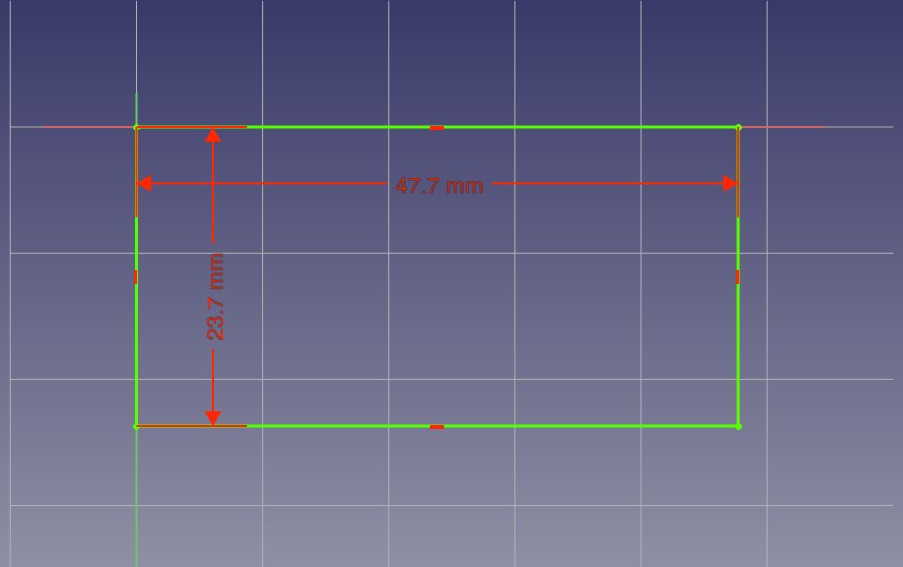 Note that the last point-on-point constraint was not absolutely necessary. You are never forced to work with fully constrained sketches. However, if we are going to print this block in 3D, it will be necessary to maintain our piece close to the origin point (which will be the center of the space where the printer head can move). By adding that constraint we are making sure that our piece will always stay "anchored" to that origin point.