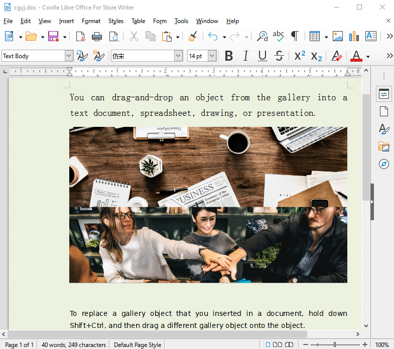 By default, the inserted graphic is centered above the paragraph that you clicked in.
