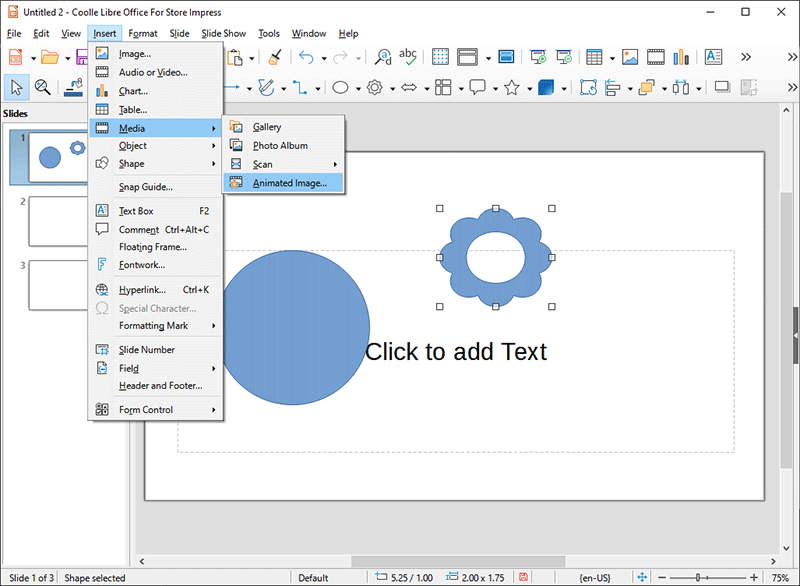 1. Select an object or group of objects that you want to include in your animation and choose Insert - Media - Animated Image.