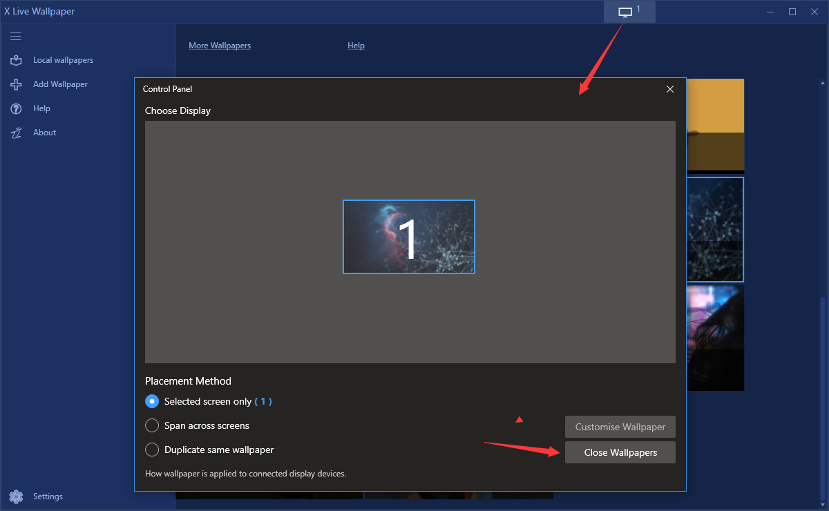 The second way, Open X Lively Wallpaper, Click on "Control Panel" in the upper right corner, and then click "CLose Wallpaper".