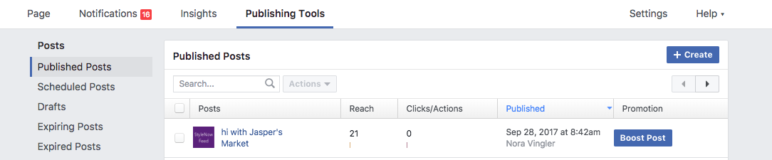 1. First, login to your Facebook Page and select Publishing Tools in the top navigation bar.