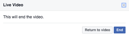 Press the Finish Live Video button to end the post. Please note, to avoid accidentally ending a Live Post,you must also confirm by pressing the End button in the message box.