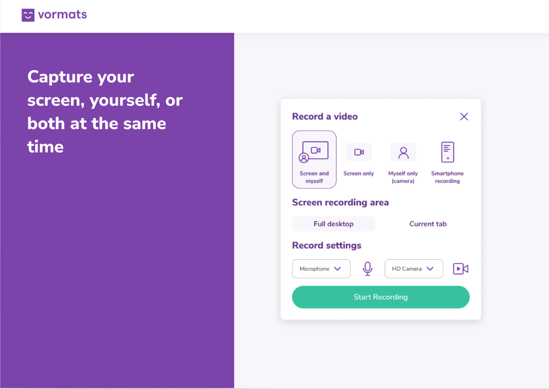 ✅ Screen and camera recordings, or even both at the same time