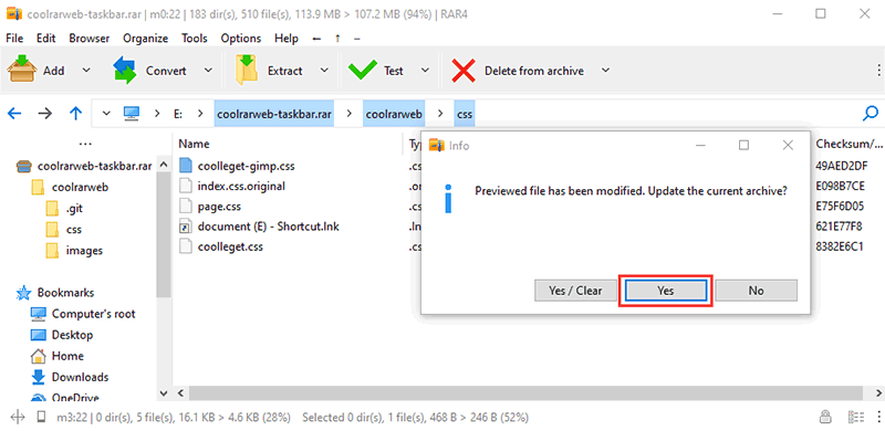 ● Thirdly,If the file preview is modified and saved, Zip Extractor Pro will automatically ask to update the file in archive with the newer version, Clice "Yes".